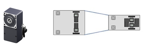 通過使用中空軸扁平減速機(jī),并交錯安裝,實(shí)現(xiàn)減少車身寬度的細(xì)長設(shè)計。因此窄路也能同時行駛。從而減少了搬送機(jī)器人的等待時間、有助于提高效率。
