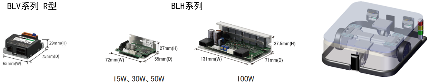 無刷電動機(jī)BLV/BLH系列可實(shí)現(xiàn)電池驅(qū)動,因此可用于搬送機(jī)器人的車軸或搭載于搬送裝置。