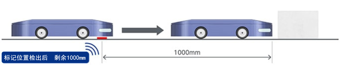 可像步進(jìn)電動機(jī)及伺服電動機(jī)一樣設(shè)定移動量??蓪?shí)現(xiàn)預(yù)先在導(dǎo)軌上設(shè)定的距離的搬送。在自行行駛中, 也可設(shè)定從傳感器位置移動到目標(biāo)位置的距離,完成區(qū)間內(nèi)的定位運(yùn)行。