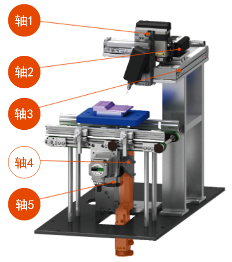 此軸用作將處理完的工件翻轉方向。 αSTEP AZ系列電動機后部搭載無需電池的機械式絕對編碼器(ABZO編碼器)。 不會受到原點返回費時及外部傳感器相關問題的影響。