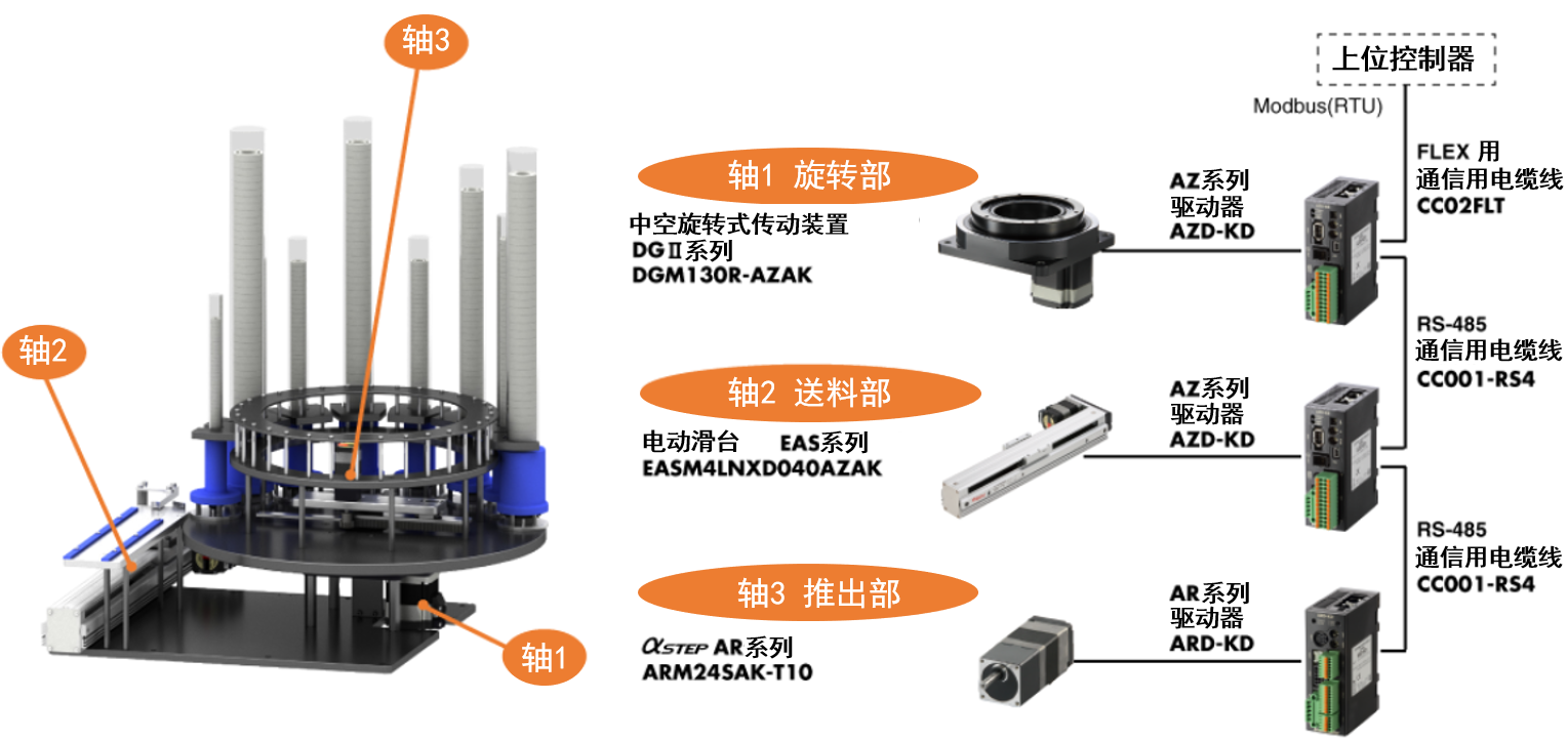 為確認(rèn)各軸的狀態(tài),此次的裝置全軸都由αSTEP構(gòu)成。αSTEP是兼?zhèn)溟_環(huán)控制”與“閉環(huán)控制”的優(yōu)點(diǎn),具有獨(dú)特控制方式的電動(dòng)機(jī)。實(shí)時(shí)監(jiān)控電動(dòng)機(jī)位置,定位完成時(shí)輸出END信號(hào)。通常情況下,與脈沖指令同步基于開環(huán)控制進(jìn)行運(yùn)行。過載時(shí),會(huì)立即切換到閉環(huán)控制,執(zhí)行位置修正。連續(xù)過載時(shí),會(huì)輸出警報(bào)信號(hào)。因此,具有高可靠性。 即使因經(jīng)年摩擦增加或發(fā)生不必要的零件剮蹭而導(dǎo)致負(fù)載變化,也能減少裝置的停機(jī)時(shí)間,提升生產(chǎn)效率。