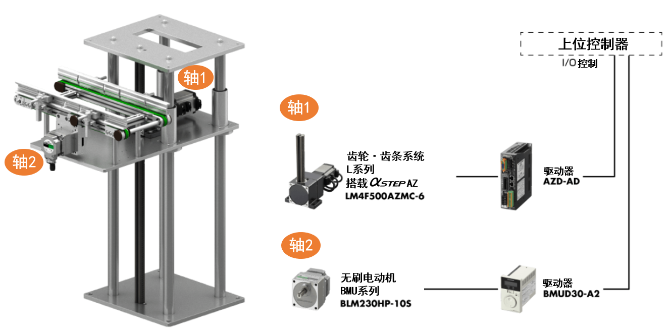 傳送帶組合的重量會(huì)成為升降軸的負(fù)荷。通過(guò)采用輕量且大功率的無(wú)刷電動(dòng)機(jī)BMU系列,減輕升降軸的負(fù)載,有助于實(shí)現(xiàn)高速化。因?yàn)槭潜⌒蜆?gòu)造,可減少傳送帶側(cè)面電動(dòng)機(jī)的突出。