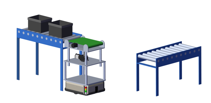 此裝置是在高度不同的傳送帶間交接工件的升降裝置(往返輸送)。利用上下段配置的傳送帶兩端,循環(huán)輸送用來(lái)裝載工作物的托盤。通過(guò)這個(gè)裝置,使得原本需要手動(dòng)的托盤回收·運(yùn)送作業(yè),實(shí)現(xiàn)自動(dòng)化。