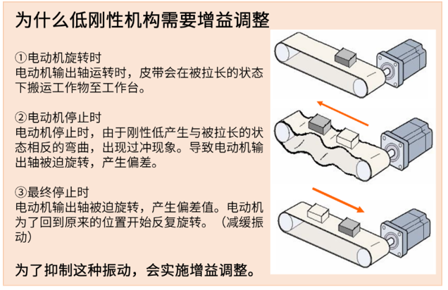而伺服電動(dòng)機(jī)因?yàn)槭情]環(huán)控制,必須對(duì)應(yīng)負(fù)載的狀態(tài)做增益調(diào)整。近年伺服電動(dòng)機(jī)的自動(dòng)增益功能,可以進(jìn)行自動(dòng)的增益調(diào)整。