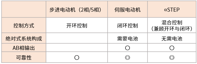 步進(jìn)電動(dòng)機(jī)和以步進(jìn)電動(dòng)機(jī)為基礎(chǔ)的αSTEP AZ系列依靠電動(dòng)機(jī)構(gòu)造,而伺服電動(dòng)機(jī)依靠編碼器反饋信號(hào)實(shí)現(xiàn)定位。