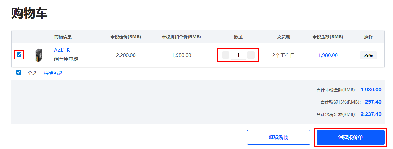 如需繼續(xù)添加型號,可點擊“繼續(xù)購物”按鈕。