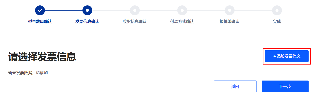 初次報價,請通過“+添加發(fā)票信息”按鈕添加。