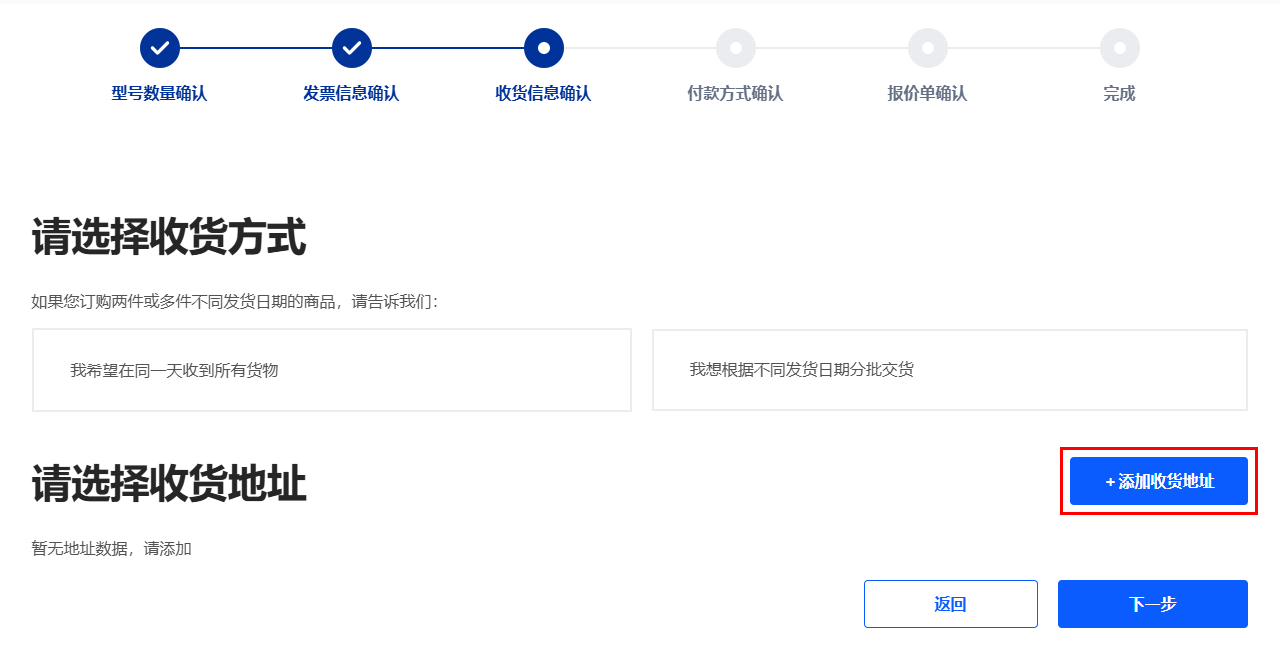 選擇收貨方式和收貨地址后,點擊“下一步”按鈕。