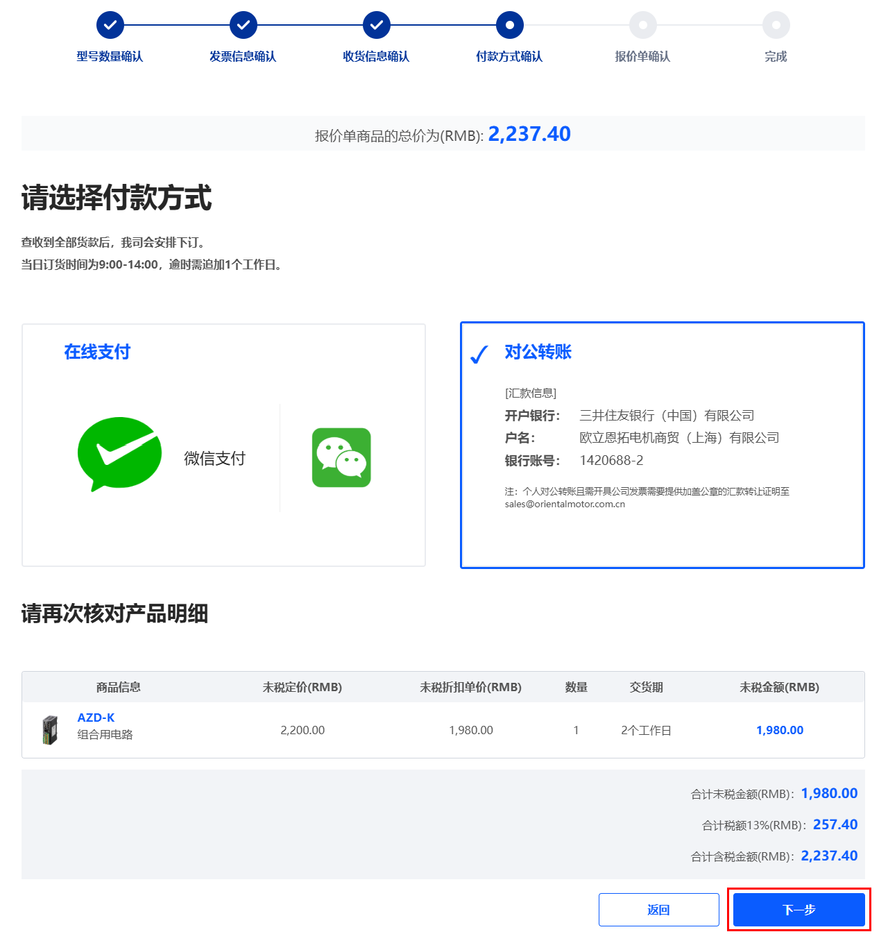 確認(rèn)報價單全部信息無誤后,點擊“下一步”按鈕。