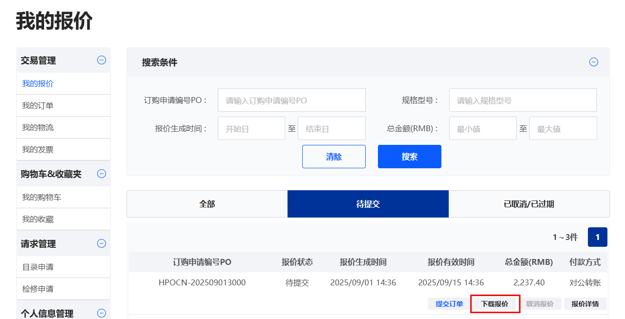 點擊對應(yīng)報價下的“下載報價”按鈕,即可完成下載。