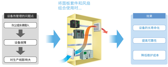 通過(guò)搭配電控柜安裝用面板套件和軸流風(fēng)扇使用,可以防止灰塵和水滴的侵入,從而實(shí)現(xiàn)電控柜內(nèi)部設(shè)備的長(zhǎng)壽命和高可靠性。