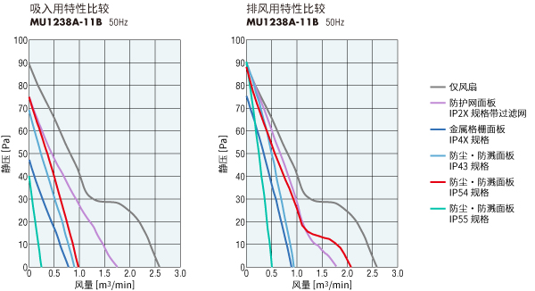 根據(jù)安裝風(fēng)扇的面板類型,風(fēng)量-靜壓特性會(huì)發(fā)生變化。