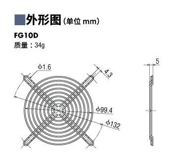 | 說(shuō)明 | 防護(hù)網(wǎng)(1片)與安裝用螺絲的套件品。 (適用軸流風(fēng)扇的尺寸: □104 mm-厚度度25 mm) |