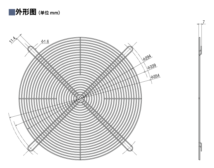 | 說明 | 防護(hù)網(wǎng)(1片)與安裝用螺絲的套件品。 (適用軸流風(fēng)扇的尺寸: □300 mm) |