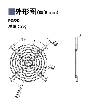 | 說明 | 防護網(wǎng)(1片)與安裝用螺絲的套件品。 (適用軸流風(fēng)扇的尺寸: □92 mm-厚度度25 mm) |