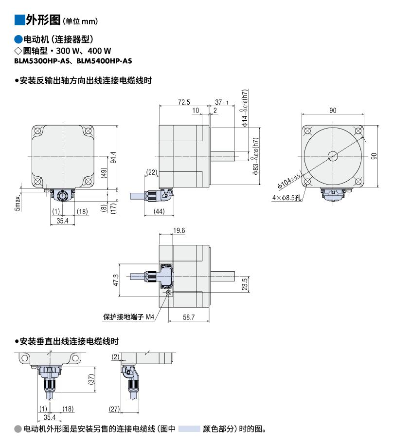 - 表示防塵?抗水性能的IP 是根據(jù)IEC 60529和IEC 60034-5標(biāo)準(zhǔn)規(guī)定的。連接器型的保護(hù)等級(jí)適用于連接電纜線已連接的狀態(tài)。驅(qū)動(dòng)器連接用連接器部分除外。