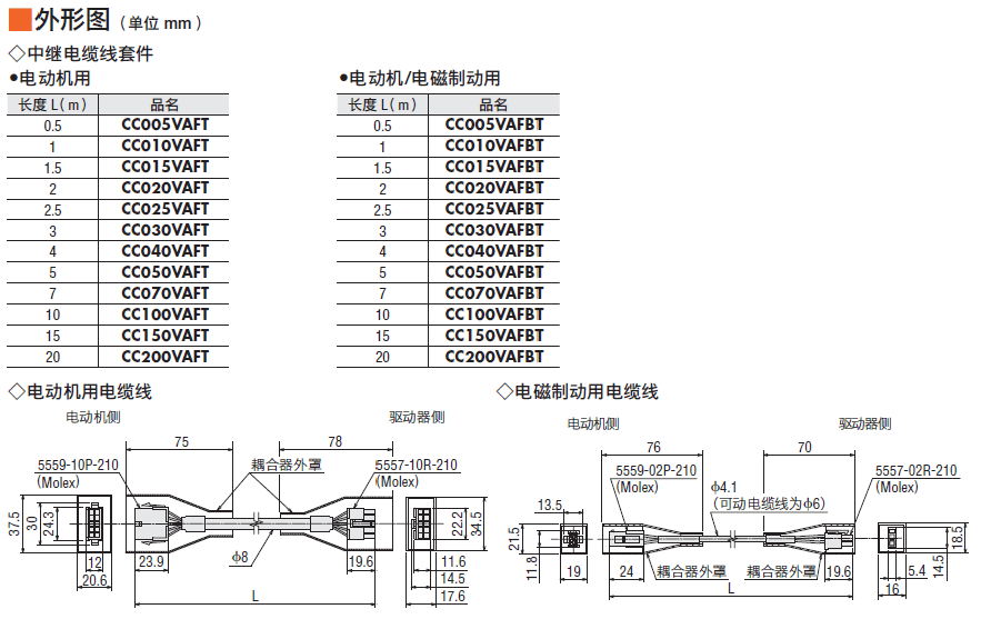 | 說明 | 電動機與電纜線間中繼時必需的電動機用電纜線。長度5 m |