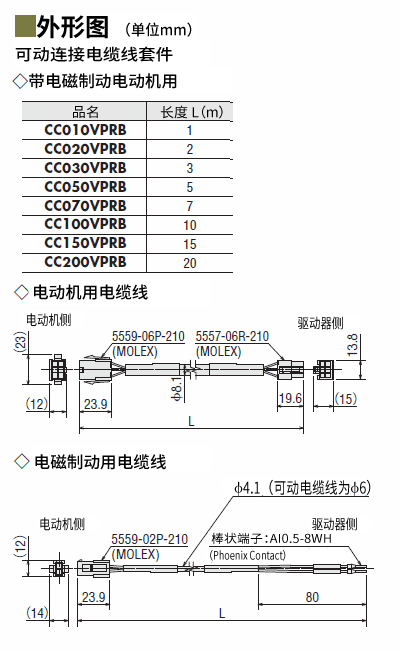 電纜線 帶電磁制動(dòng)用可動(dòng)電纜線套件