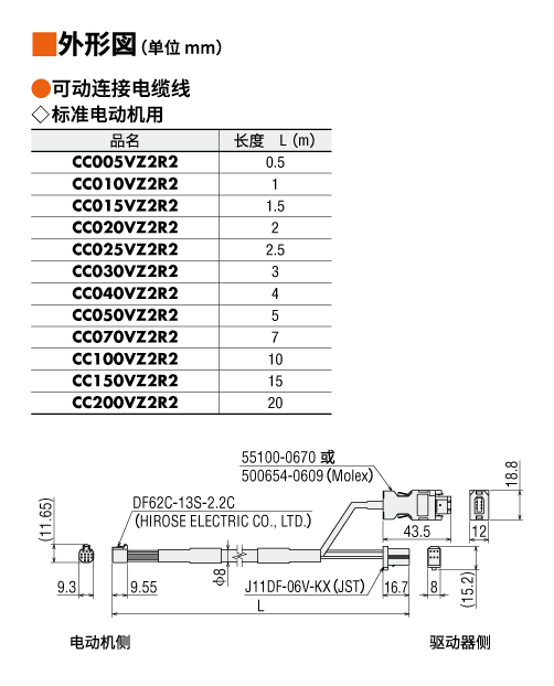 | 說(shuō)明 | 電動(dòng)機(jī)與驅(qū)動(dòng)器間的可動(dòng)電動(dòng)機(jī)電纜線。請(qǐng)于電動(dòng)機(jī)安裝在可動(dòng)部,電纜線需彎曲時(shí)使用。長(zhǎng)度5 m |