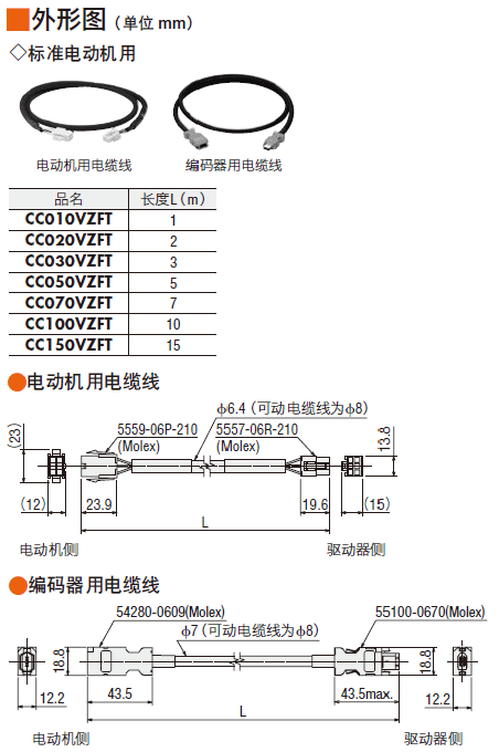 | 說明 | 電動機(jī)與電纜線間中繼時必需的電纜線。長度5 m |