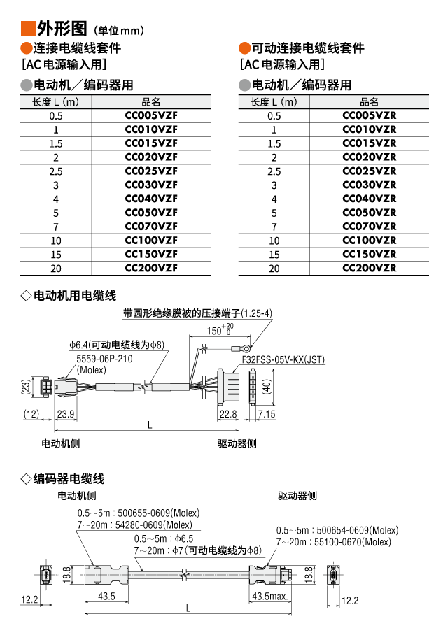 | 說明 | 電動(dòng)機(jī)與驅(qū)動(dòng)器間的可動(dòng)電動(dòng)機(jī)電纜線。請(qǐng)于電動(dòng)機(jī)安裝在可動(dòng)部,電纜線需彎曲時(shí)使用。長(zhǎng)度5 m |