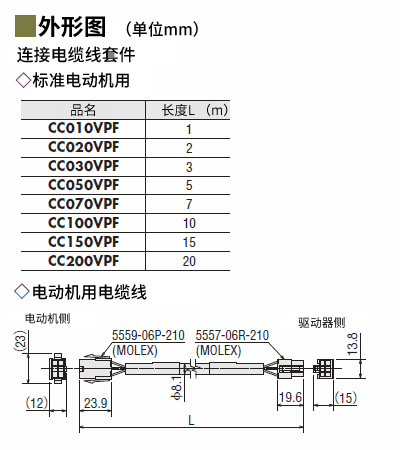 | 說明 | 電動機與驅(qū)動器間連接,或電動機與電纜線間中繼時必需的電動機用電纜線。長度10 m |