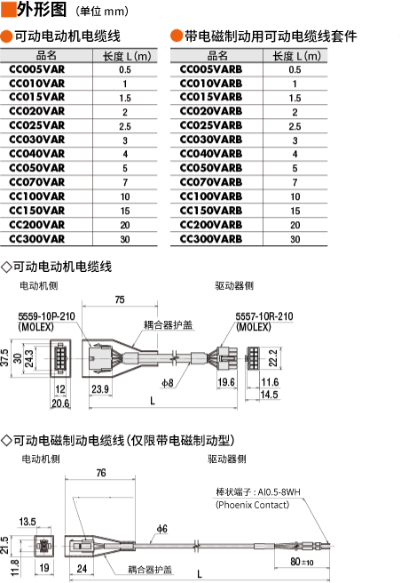 | 說明 | 電動機與驅(qū)動器間的可動電動機用電纜線。請于電動機安裝在可動部,電纜線需彎曲時使用。長度30 m |