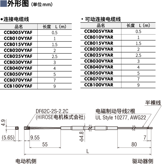 | 說明 | 連接器連接方式電磁制動與DC電源連接用的電纜線。單側(cè)帶連接器,長4 m |