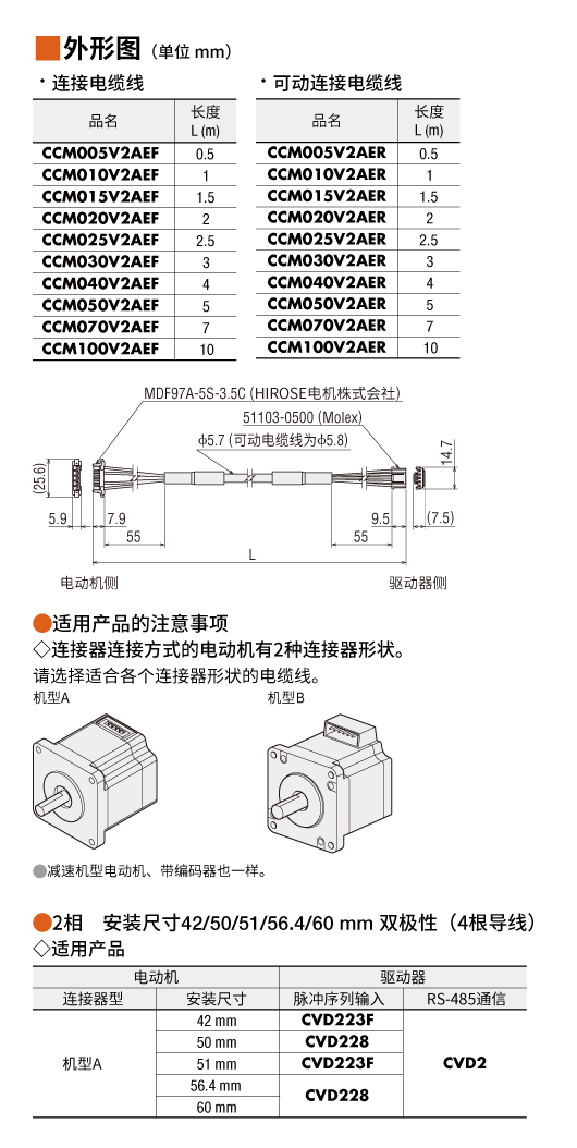| 說明 | 連接器連接方式電動機與驅(qū)動器直接連接用的可動電纜線。請于電動機安裝在可動部,電纜線需彎曲時使用。兩端帶連接器,長1 m |