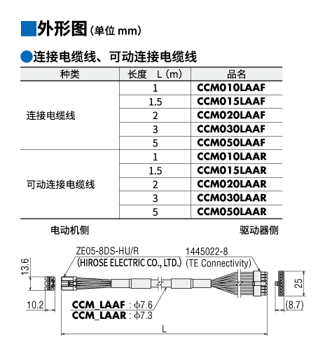 | 說明 | 連接器型電動機與驅動器直接連接用的電纜線。兩端帶連接器,長1.5 m |