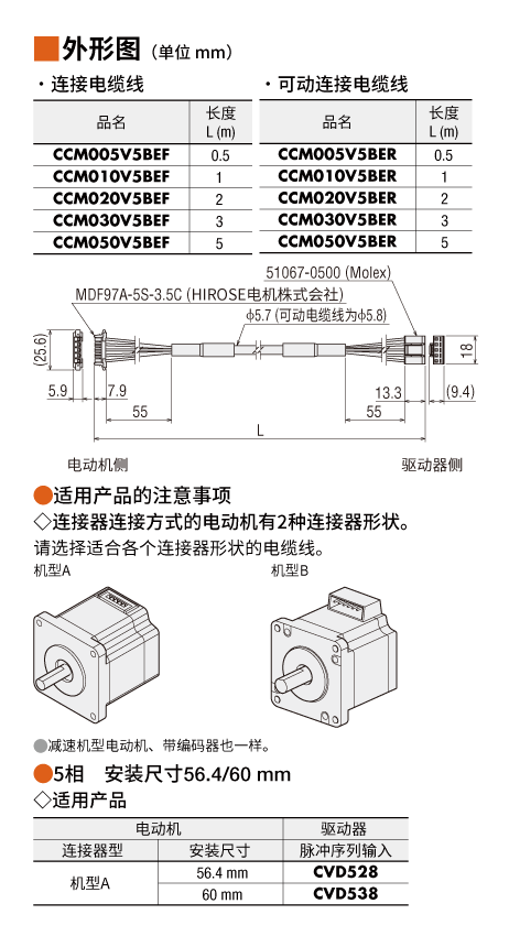 | 說明 | 連機(jī)器連接方式電動機(jī)與驅(qū)動器直接連接用的可動電纜線。請于電動機(jī)安裝在可動部,電纜線需彎曲時使用。兩端帶連接器,長3 m |