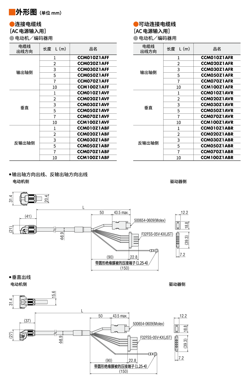 | 說明 | 可動連接電纜線 垂直出線 長度3 m 請于電纜線需反復(fù)彎曲時使用。 |