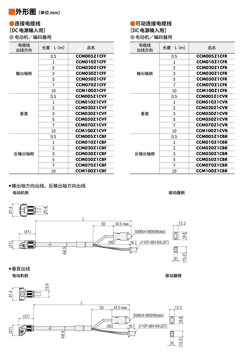 | 說明 | 可動連接電纜線 反輸出軸方向出線 長度10 m 請于電纜線需反復彎曲時使用。 |