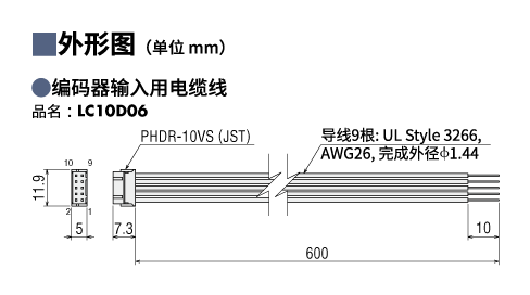 | 說明 | 編碼器輸入用電纜線,用于CVD系列 全閉環(huán)控制型驅(qū)動器。長度 0.6 m |