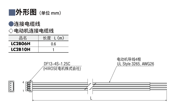 說明 請用于電動機與驅動器間的連接。已壓接連接器導線型,長1 m