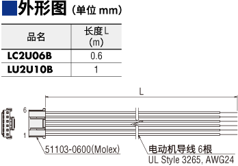 | 說明 | 請用于電動機與驅(qū)動器間的連接。已壓接連接器導(dǎo)線型,長0.6 m |