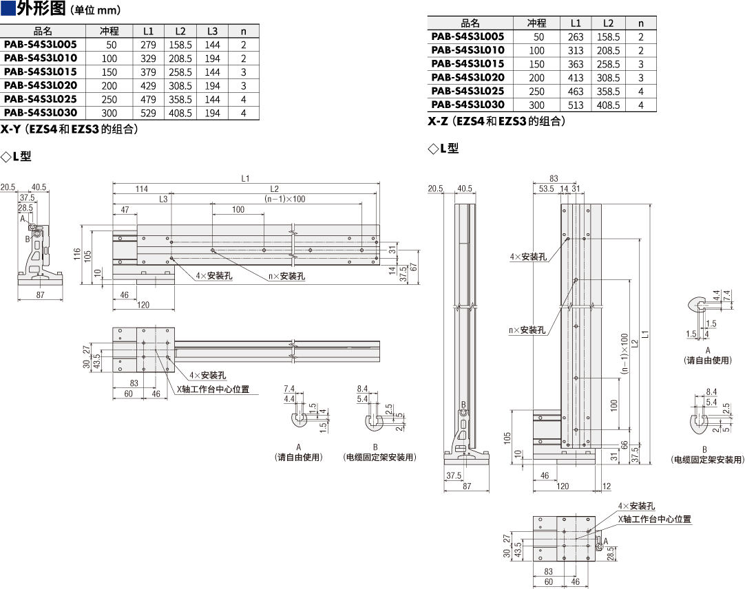 | 說明 | EZS4與EZS3的組合 L型 2軸側(cè)行程150 mm |