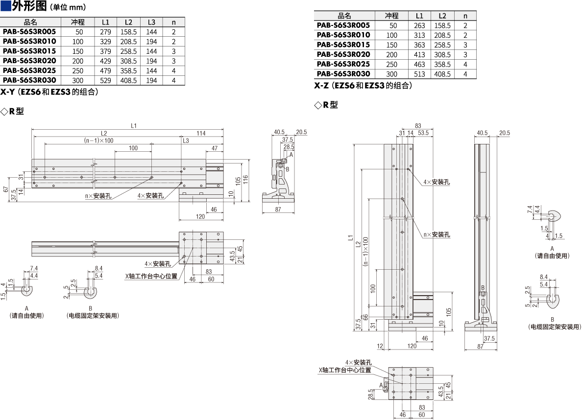 | 說明 | EZS6與EZS3的組合 R型 2軸側(cè)行程150 mm |