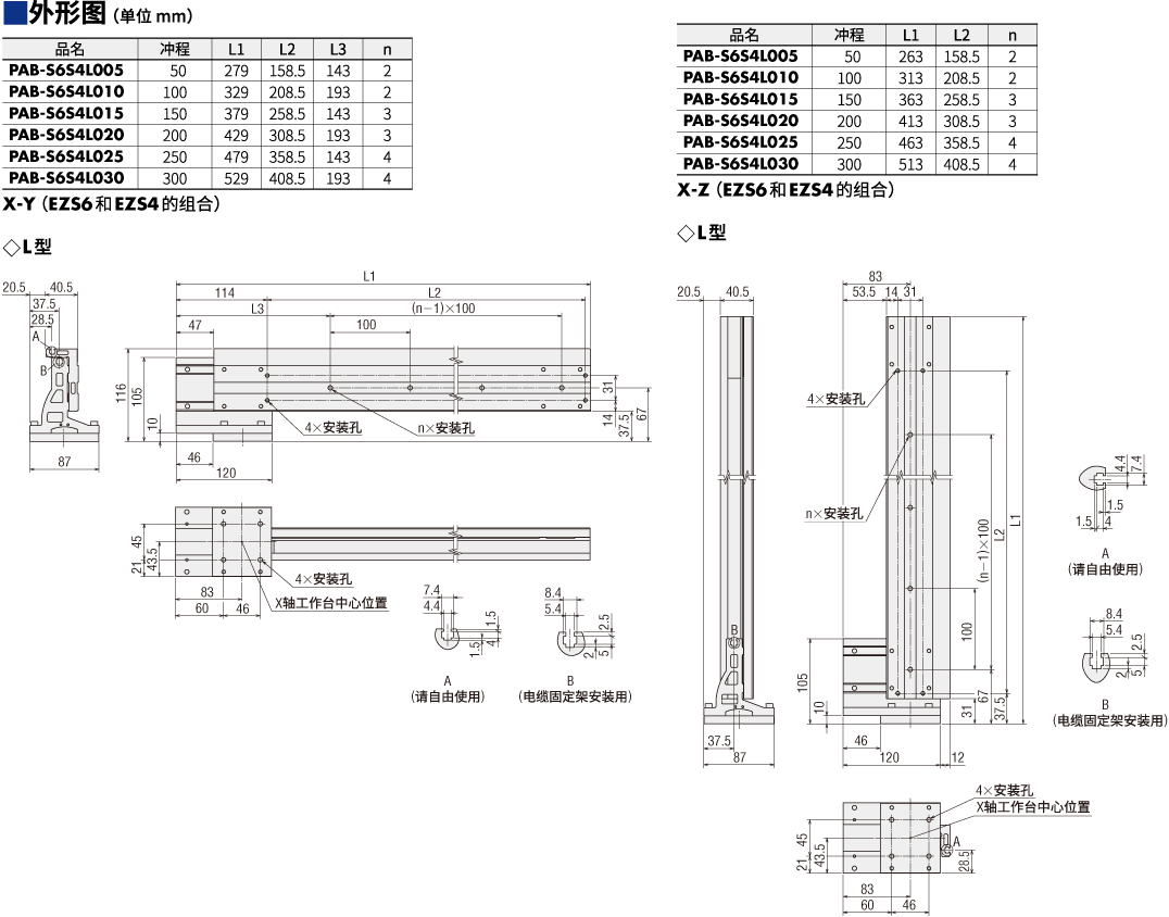 | 說明 | EZS6與EZS4的組合 L型 2軸側(cè)行程150 mm |