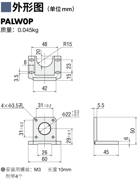 | 說明 | 安裝尺寸42 mm電動機用 L型底座。 |