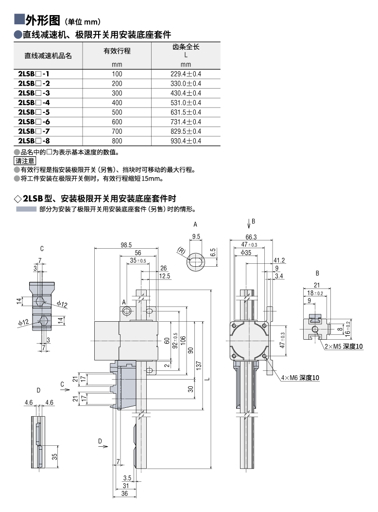 | 說明 | 極限開關(guān)用安裝底座、擋塊 (4個)、護(hù)蓋 |