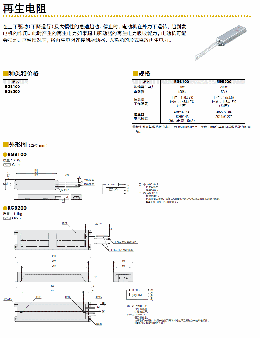 | 說(shuō)明 | 進(jìn)行上下驅(qū)動(dòng)或大慣性驅(qū)動(dòng)時(shí),與驅(qū)動(dòng)器連接,再生電力以熱能量形式釋放。 |
