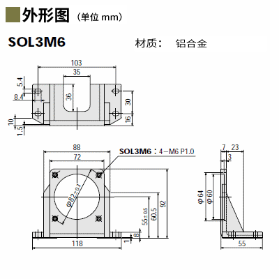 | 說明 | 安裝尺寸70 mm用 材質(zhì):鋁合金 |