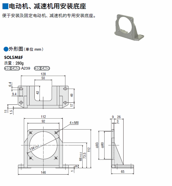 | 電動(dòng)機(jī)安裝底座 | SOL5M8F | 14個(gè)工作日 | 229.00 | 206.00 | |
