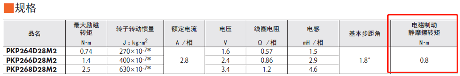 由于PKP系列的電磁制動類型為無勵磁動作型,因此此規(guī)格值為驅(qū)動器斷電后的電動機保持轉(zhuǎn)矩,可在官網(wǎng)或產(chǎn)品目錄規(guī)格中查看確認此規(guī)格值。