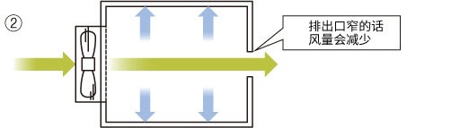 • 如果出口較窄,風(fēng)量會(huì)減少,因此請(qǐng)取足夠大的出口