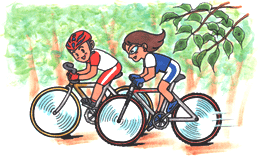 馬姐,這輛自行車雖然車輪那么大,踏板卻那么輕,跑起來真快?。?
